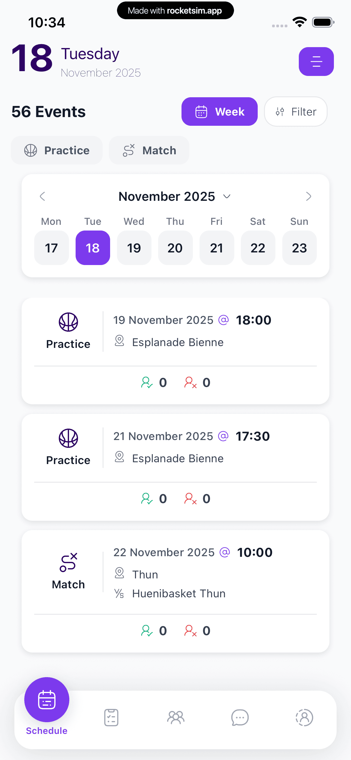 • Mobile schedule combining training, matches, and club events in one place.