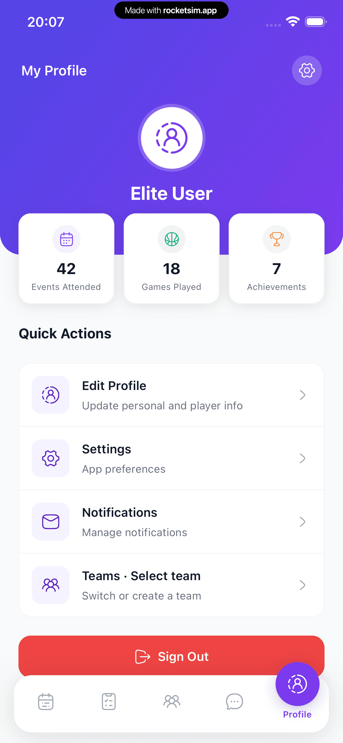 • One account that can switch between player and coach views.
